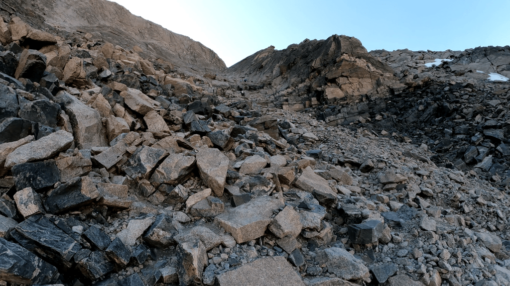Reaching the boulder field early in the day gave a breathtaking view of the peak and the enormous East face. The keyhole notch was clearly visible up ahead and I set off hopping across the boulders. I noticed there seemed to be some usable water running here and I planned to fill up on descent.